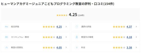 口コミサイトでのヒューマンアカデミージュニアの評価をまとめました。
