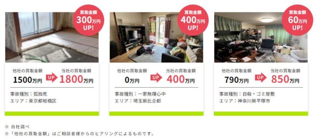 その一方、「成仏不動産の正しい買取」は事故物件の扱いを熟知しているため、他社よりも高く買取・仲介できる場合も珍しくありません。