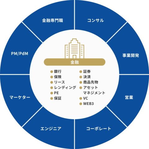 銀行・証券・保険などの従来領域だけでなく、フィンテックやWeb系などの最新領域にも対応しています。