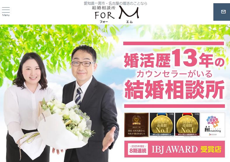 結婚相談所 for M(フォーエム)は愛知県一宮市にある結婚相談所です。