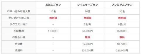 結婚相談所の相場と比べて、初期費用・成婚退会料は安めとなっており、月会費は平均レベルです。