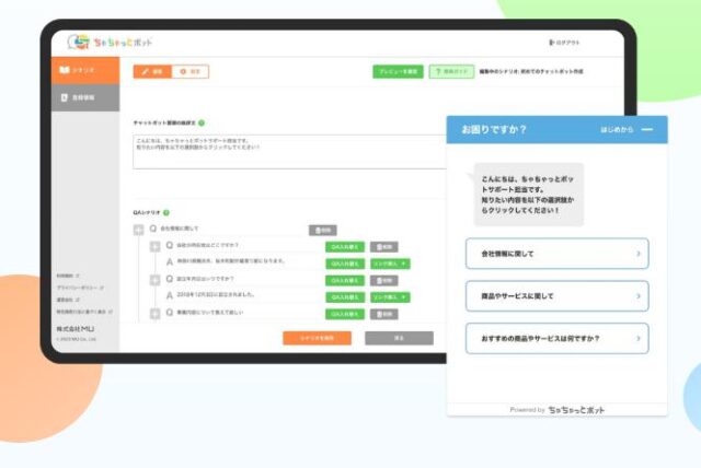 (株)MUが運営する「ちゃちゃっとボット」は、チャットボットを運営中のホームページ内に簡単に設置できるオンラインサービスです。