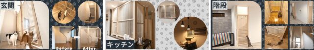 にゃんがーどは、玄関・キッチン・階段昇降口・階段手すり・廊下・間仕切りなど、さまざまな場所に設置できます。
