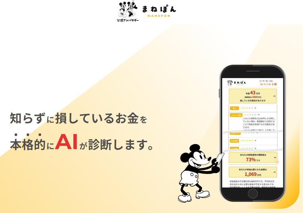 (株)タックナビ が運営する「まねぽん」では、お金のAI診断&相談サービスを提供しています。