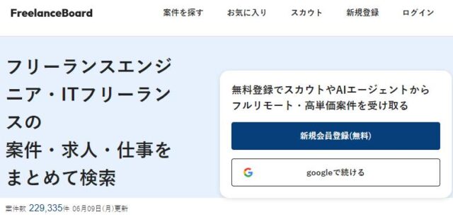 フリーランスボードは、IT/Web系のフリーランスを対象とした案件検索サービスです。