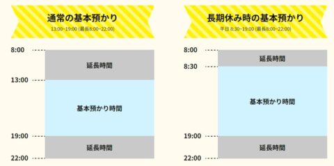 基本時間は13時から19時までとなっており、8時から13時・19時から22時までは延長時間となります。