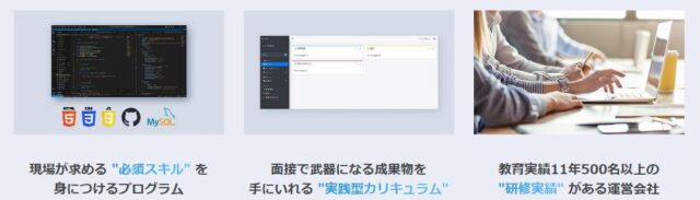 さらに、LaravelやGit、API連携など、開発現場で必要なスキルを体系的に習得できます。