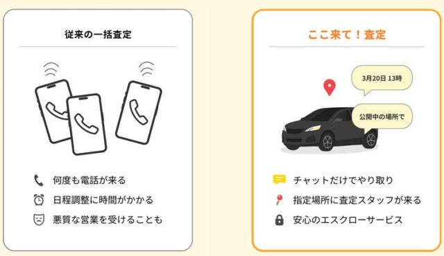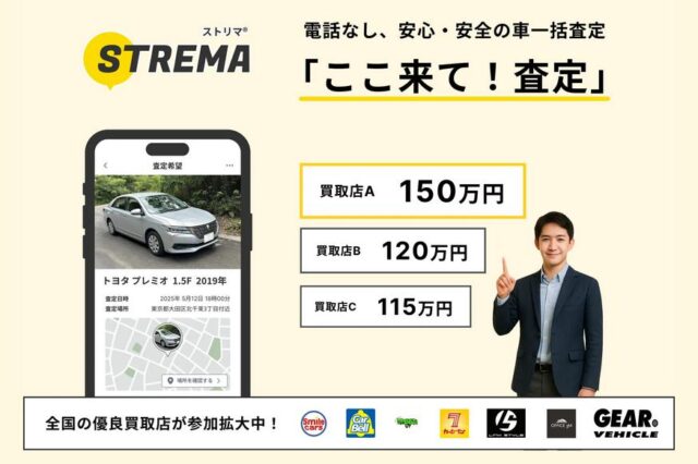 ストリマ(STREMA)の「ここ来て!査定」は、従来の中古車一括査定の問題点を解決しています。