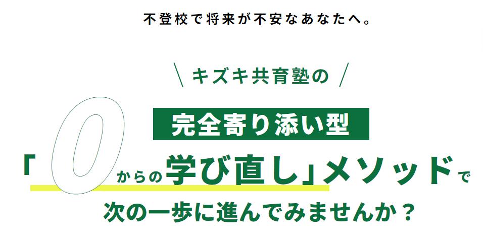 (株)キズキが運営する「キズキ共育塾」は、不登校・ひきこもり・中退などでの学力的なハンデを克服し、高校・大学・専門学校などへの受験対策や高認試験対策などを行っています。
