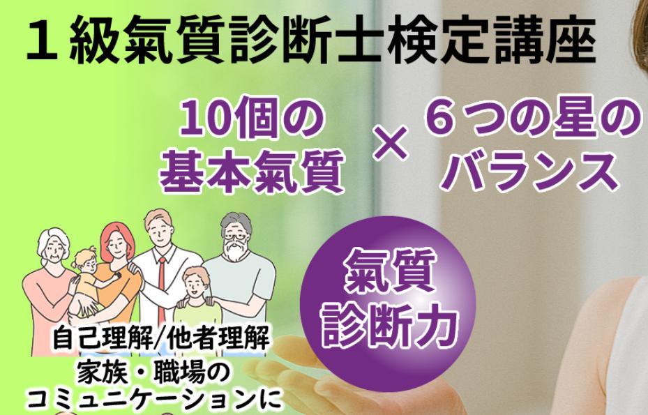 風水ライフデザインスクールの1級氣質診断士検定講座を受講することで、簡易的な氣質診断が行えるようになります。