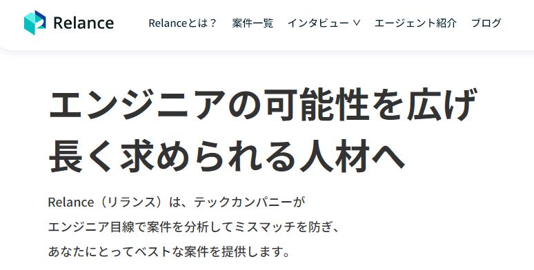 Relance(リランス)は、フリーランスのITエンジニアを対象とした案件紹介サービスです。