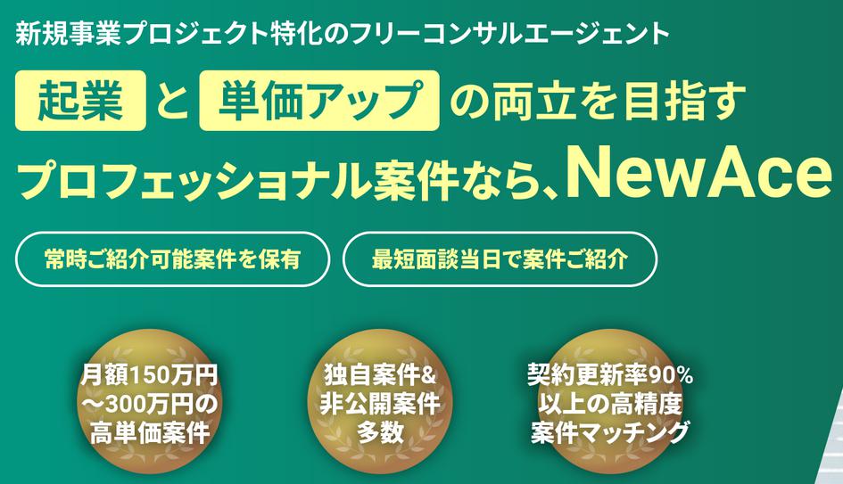 New Ace(ニューエース)は、フリーランスのコンサルタントを対象に案件を紹介しています。