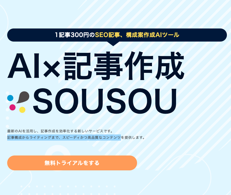 >>SOUSOU AIライティングツールの無料トライアル申し込みはこちら