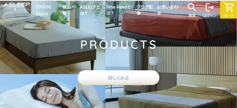 ASLEEP with Fine Revo(アスリープ ファインデポ)は、独自素材のFine Revo(ファインデポ)を使用したマットレスやソファー、ピローなどを販売しています。