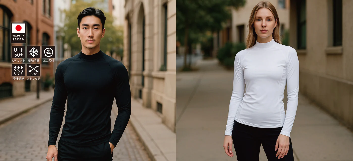 フェニックス(株)が販売する「PNX(ピーエヌエックス)UV&Heatプロテクトアンダーシャツ」は、肌の老化の原因の一つである太陽光への対策が行えるアンダーシャツです。