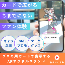 カードに記載されたQRコードをスマホで読み取ることにより、デジタルアクリルスタンド、動画、フォトフレーム、パラパラカード、飛び出すARカードなど、さまざまなWebAR演出を行うことができます。