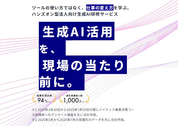 (株)LIBREXが運営する「バイテックBiz」は、法人向けの生成AI研修サービスです。