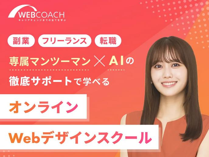 (株)アップグレードが運営する「WEBCOACH」(ウェブコーチ)は、Webデザインだけでなく、生成AIやオンラインマーケティング、プログラミング、さらには、法務・税務など、50種類以上のスキルが身につけられるオンラインスクールです。