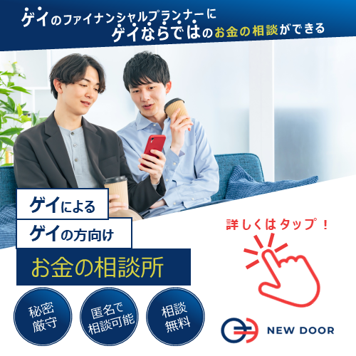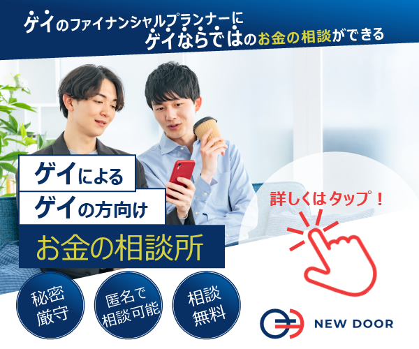 NEWDOOR(ニュードア)は、ゲイ(男性同性愛者)に特化したお金の相談所です。