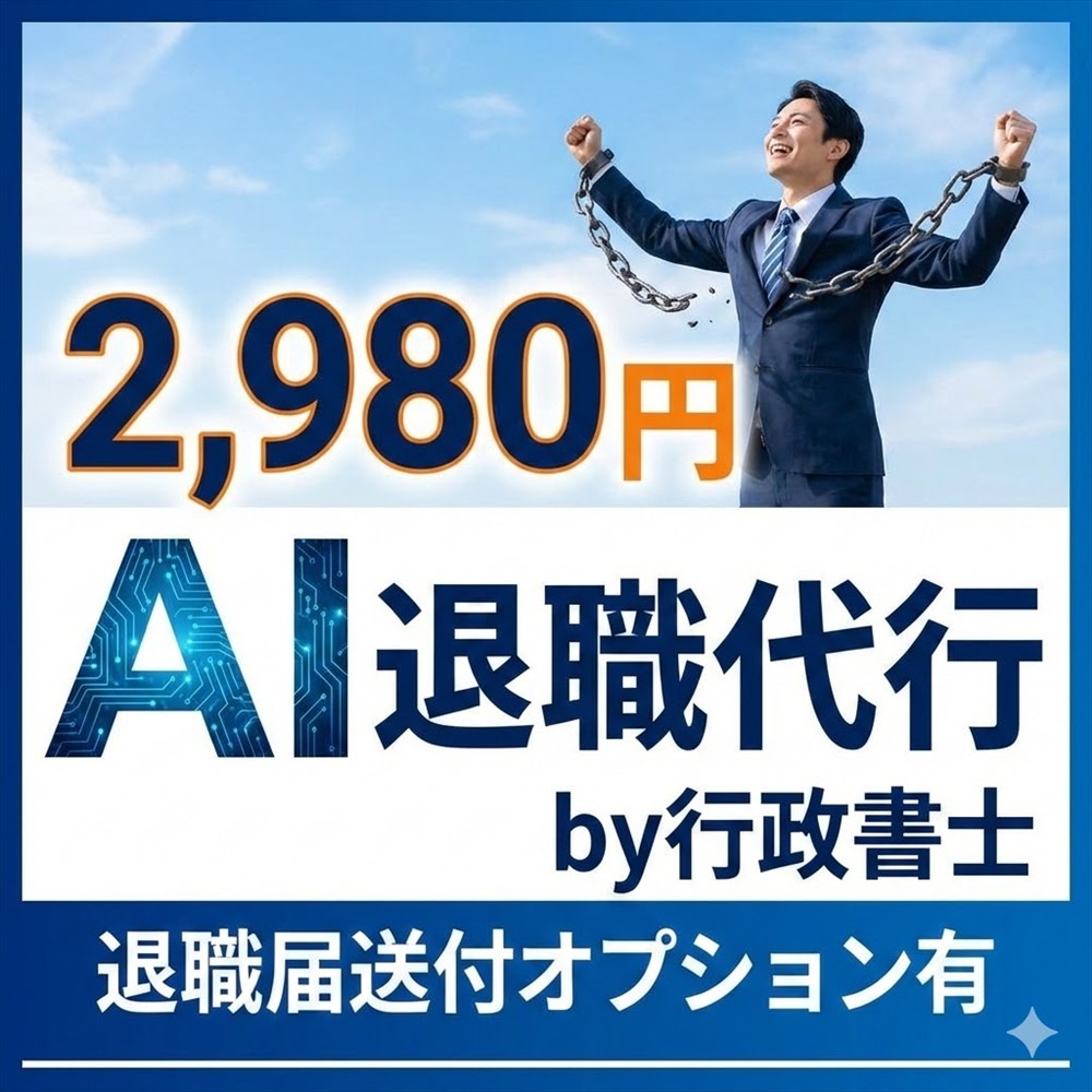 その結果、「AI退職代行 by 行政書士」は人件費が不要になる分だけ、大幅な低価格で提供することが可能になりました。