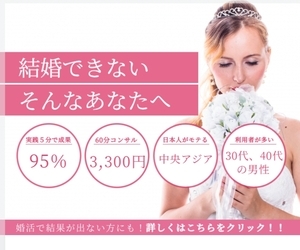 「中央アジア女性との国際結婚コンサルティング」は、婚活アプリや結婚相談所などでも成果が出ない婚活難民を主な対象としています。