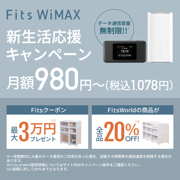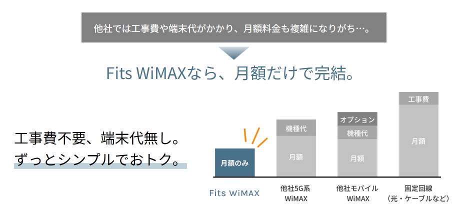 Fits WiMAXは端末費用は無料でレンタルできますし、月額費用も業界最安値水準です。