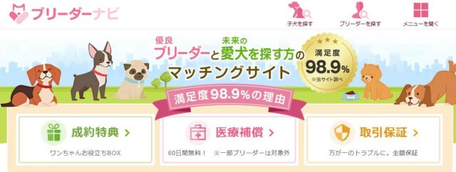ブリーダーナビでは、以下のサービスで仲介業者としての責任を果たしています。