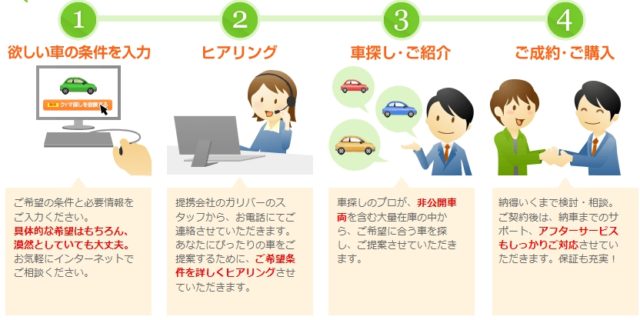 インターネットからでは見つけられない非公開車両から、あなたが欲しい車種や年式などの中古車を見つけてくれるそうですが、果たして信用できるのでしょうか?