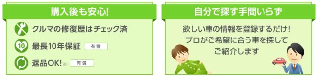 また、購入した中古車が気に入らなければ、国産車100日、輸入車30日以内であれば、返却料を支払うことで返品できます。