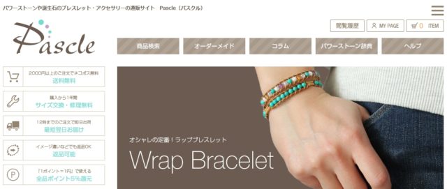 パワーストーンを用いたアクセサリーやブレスレットなどの通販を行うPascle(パスクル)は、アプリを用いたオーダーメイドデザインのブレスレットを作ることが出来たり、パワーストーンの組み合わせによる相性チェックを行ってくれるなどのサービスが用意されています。