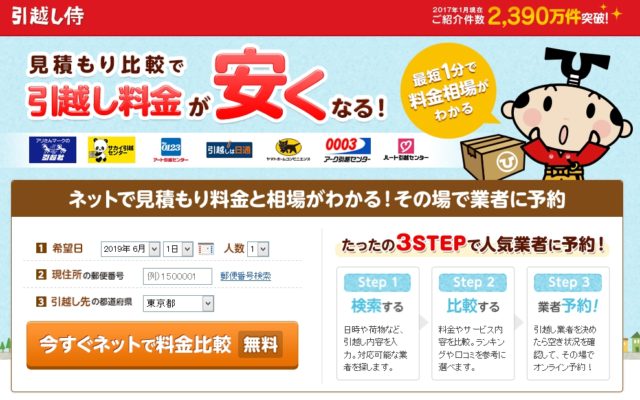 中古車買取などと同じように、引越し侍と提携している全国の引越し業者にまとめて見積もり依頼を行うWebサービスです。