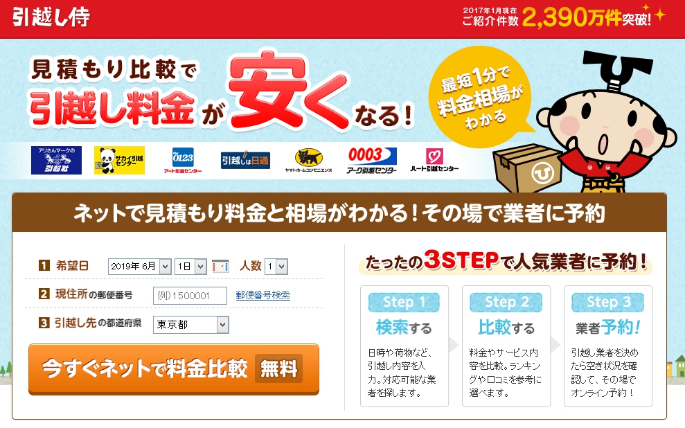引越し侍さんで相見積もりを取ったら