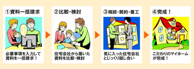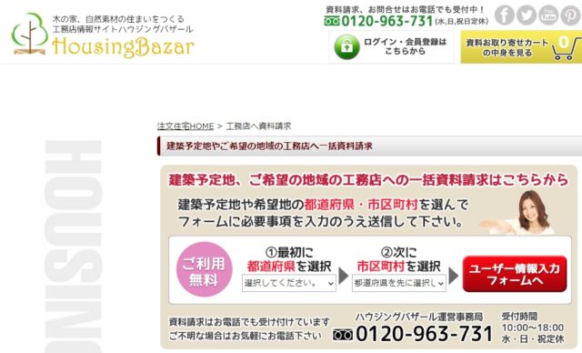 ハウジングバザールという住宅メーカーがあるのではなく、あなたが住宅を新築・改築したい地域の工務店に、一括して資料請求が行えるマッチングサービスです。