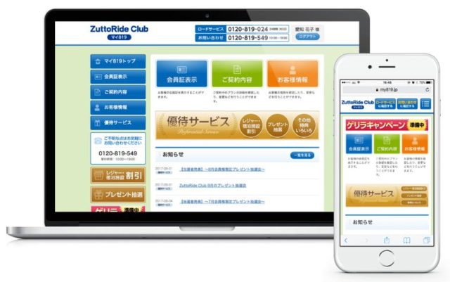 「マイ819」は、ZuttoRide Club加入中であれば、いつでも利用できるWebサービスです。