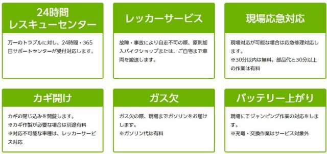 ただし、ロードサービスと盗難保険に特化したもので、その他の補償は付帯されていないので、任意保険と併用で加入することになります。