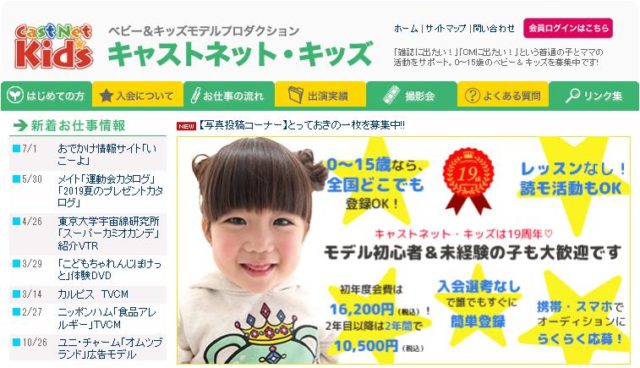 キャストネットキッズは会費を支払えばプロダクション登録が可能