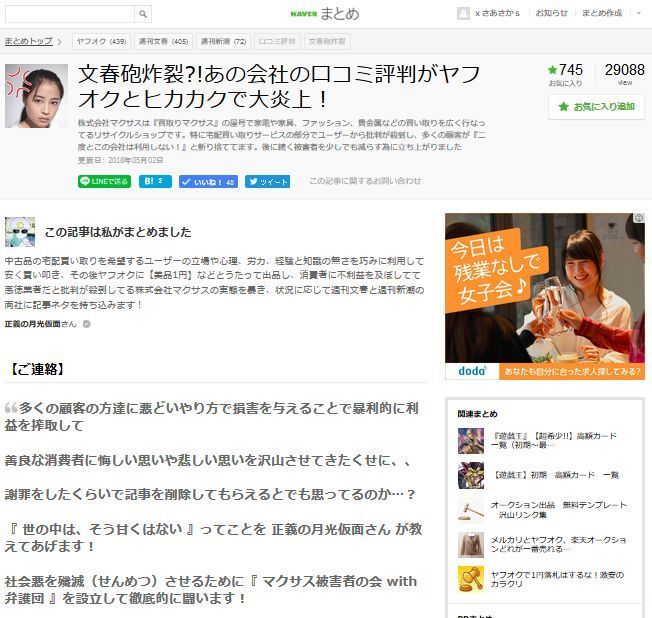 また、「買取マクサスの殲滅を目指すために正義の鉄槌を下す」などといった内容のブログも見つかりました。