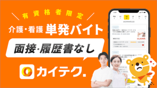 アルバイト・派遣 カイテクは介護・看護・保育の有資格者限定の単発バイトアプリ!おすすめ? カイテクは、介護・看護・保育の有資格者に特化した単発バイト求人を探せるアプリです。android・iOSのどちらにも対応... 2025.07.16 アルバイト・派遣